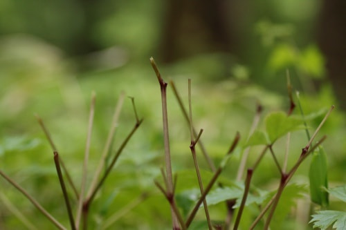 食害にあったレンゲショウマは上手く育つことが出来ず、花をつけられなくなります。