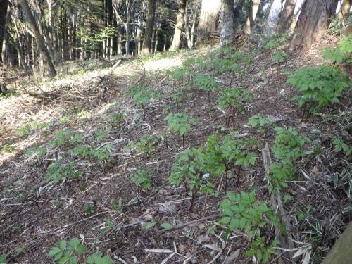 増えてきたニホンジカの食圧により、御岳山内の植物にも影響が出てきました。