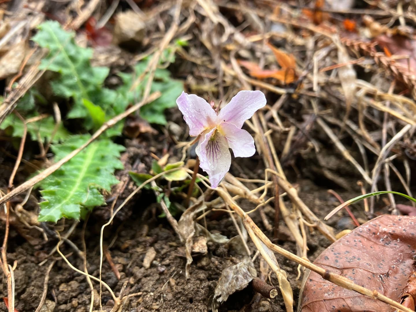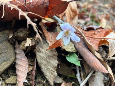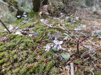 登山道の足元に咲く小さなスミレ!